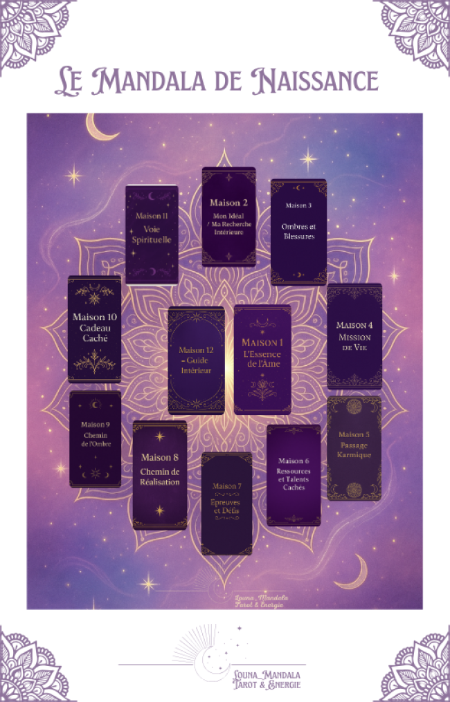 Un mandala personnalisé basé sur sa date de naissance, une analyse complète et détaillée, une lecture claire sur :